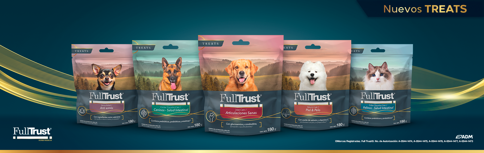 Premiar también es cuidar. FullTrust® Treats ofrece premios funcionales diseñados para complementar su alimentación con ingredientes seleccionados y beneficios que suman a su bienestar diario. Ideales para entrenamiento o para consentirlos en cualquier momento, porque cada decisión que tomas por ellos cuenta.